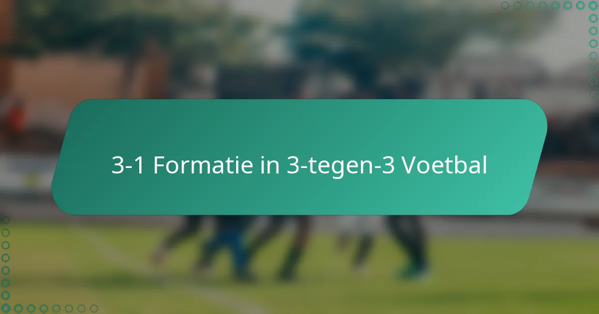 De 3-1 formatie in drie-tegen-drie voetbal heeft drie spelers die defensief zijn gepositioneerd en één speler die zich richt op de aanval. Deze opstelling is effectief gebruikt door verschillende teams, wat de tactische voordelen ervan aantoont in zowel lokale competities als internationale toernooien.