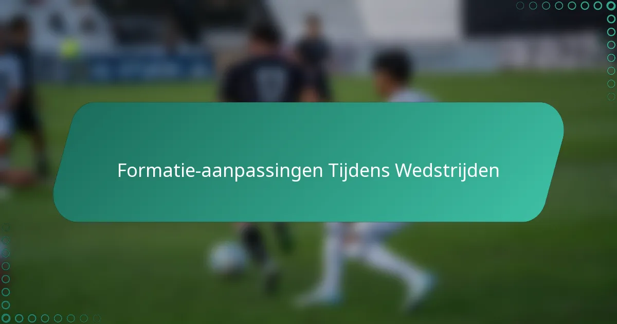 Het aanpassen van formaties tijdens wedstrijden is essentieel voor teams om effectief te reageren op de veranderende dynamiek van het spel. Door de spelersopstellingen te wijzigen, kunnen teams beter inspelen op de strategieën van de tegenstander en hun eigen prestaties optimaliseren. Deze tactische flexibiliteit verbetert niet alleen de communicatie op het veld, maar vergroot ook de kans op gunstige wedstrijduitslagen.