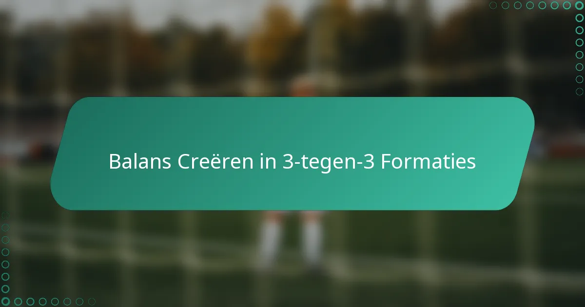Het creëren van balans in een drie-tegen-drie formatie is essentieel voor het maximaliseren van zowel de offensieve als defensieve effectiviteit. Door een gelijke verdeling van verantwoordelijkheden onder de spelers te waarborgen, kunnen teams hun samenwerking en ruimtelijke dekking verbeteren, wat zorgt voor vloeiende beweging en aanpassingsvermogen tijdens het spel. Het begrijpen van de spelersrollen en het onderhouden van effectieve communicatie zijn de sleutel tot het bereiken van deze balans en het vermijden van veelvoorkomende valkuilen die de teamdynamiek kunnen verstoren.