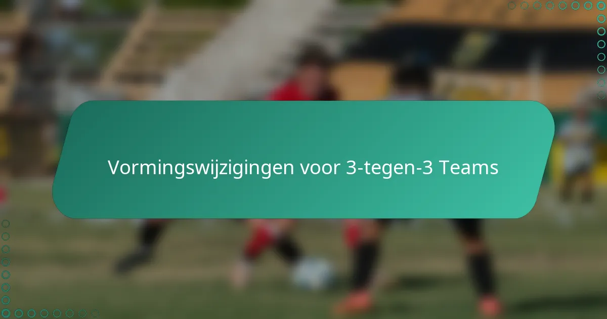 Het implementeren van formatiewijzigingen voor 3-tegen-3 teams vereist duidelijke strategieën en effectieve communicatie. Focus op het oefenen van specifieke drills, het soepel overgaan tijdens wedstrijden en het maken van aanpassingen tijdens de wedstrijd op basis van prestaties.